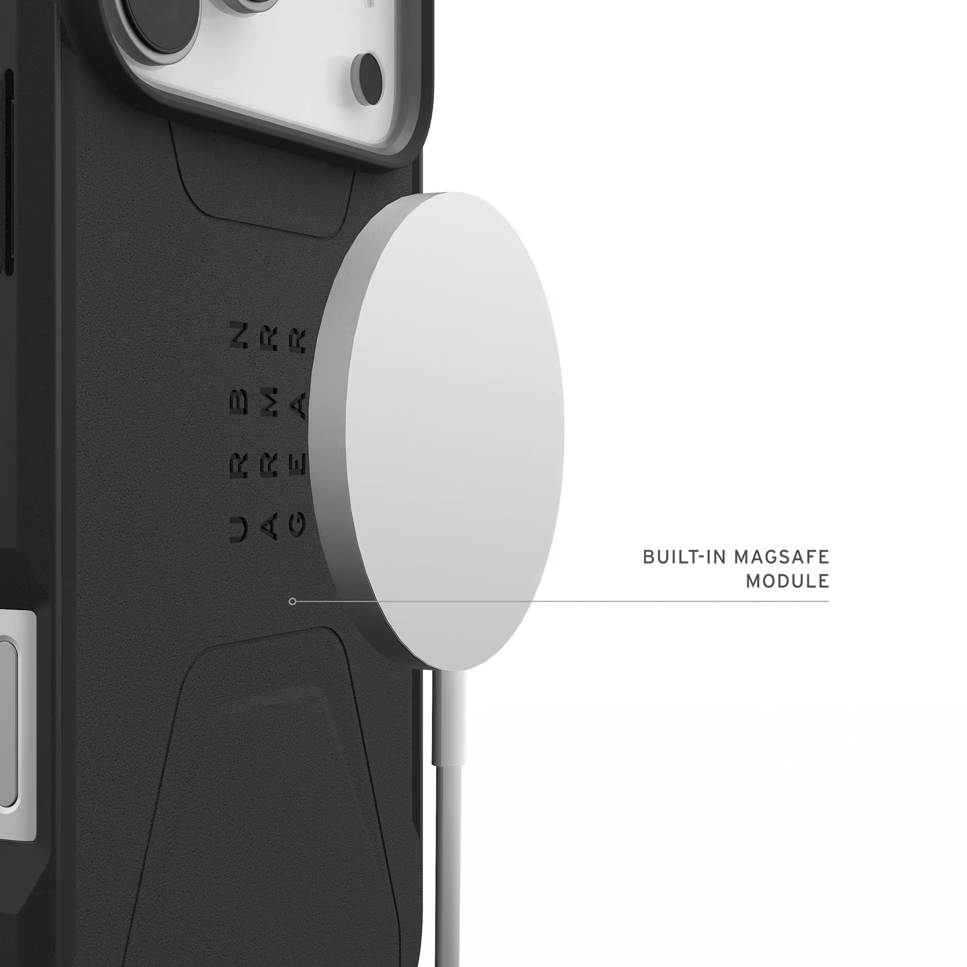 • Magnetic Module: Built-in magnet module that aligns perfectly for a seamless attachment and faster wireless charging.